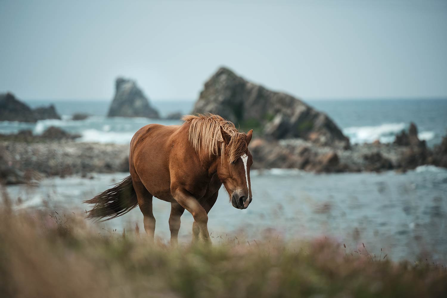 Die zutraulichen Pferde leben direkt an der Klippe und sind Teil des dortigen Naturschutzgebiets des Shimokita Hanto Quasi-National Park. Die Küstenlandschaft ist atemberaubend und macht diesen Ort mit den Pferden im Hintergrund zu einer unfassbar malerischen Kulisse – eine absolut unberührte Traumkulisse mit einer faszinierenden Rasse, die so ganz anders ist, als jene im Süden und wieder einmal die Diversität der Pferdewelt offenlegt.